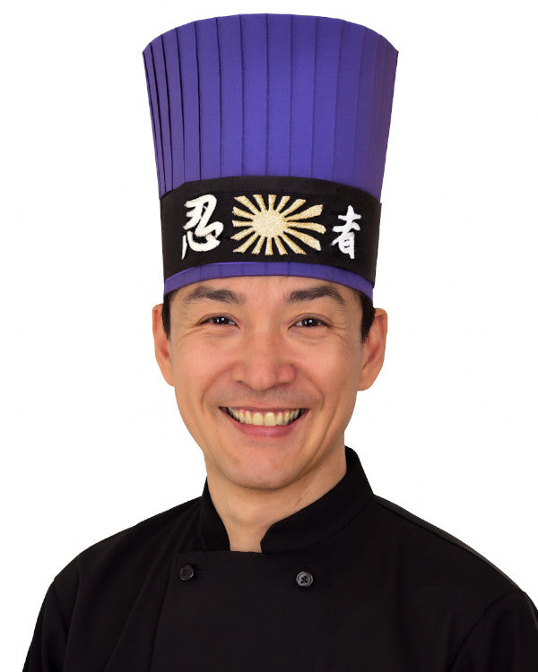 Experience the ultimate choice for Hibachi Chefs with our Purple Hibachi Chef Tall Hat Set, featuring a Japanese "Ninja" headband. Made from top-quality cotton and polyester (35% and 65% respectively), this set offers a personalized fit with a Velcro closure on the Tall Hat and boasts the largest selection on the market. The Tall Hat can be adjusted to fit head circumferences between 21" and 23.5", while the Headband measures 39" in length and 2.25" in width.