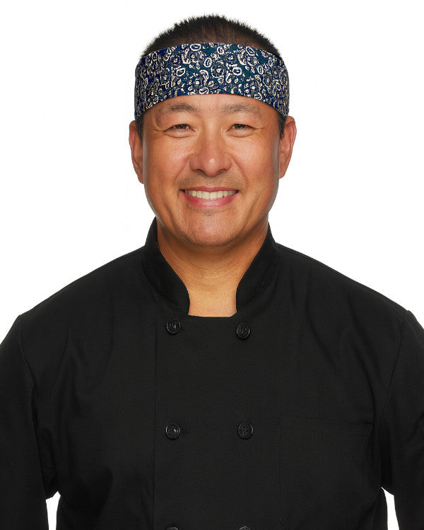 Made from 100% cotton, this professional headband keeps chefs and kitchen staff looking sharp while staying comfortable in hot environments. At 40" long and 2.25" wide, it fits most head sizes and works perfectly for restaurants, catering, and events. USA-made quality you can trust.